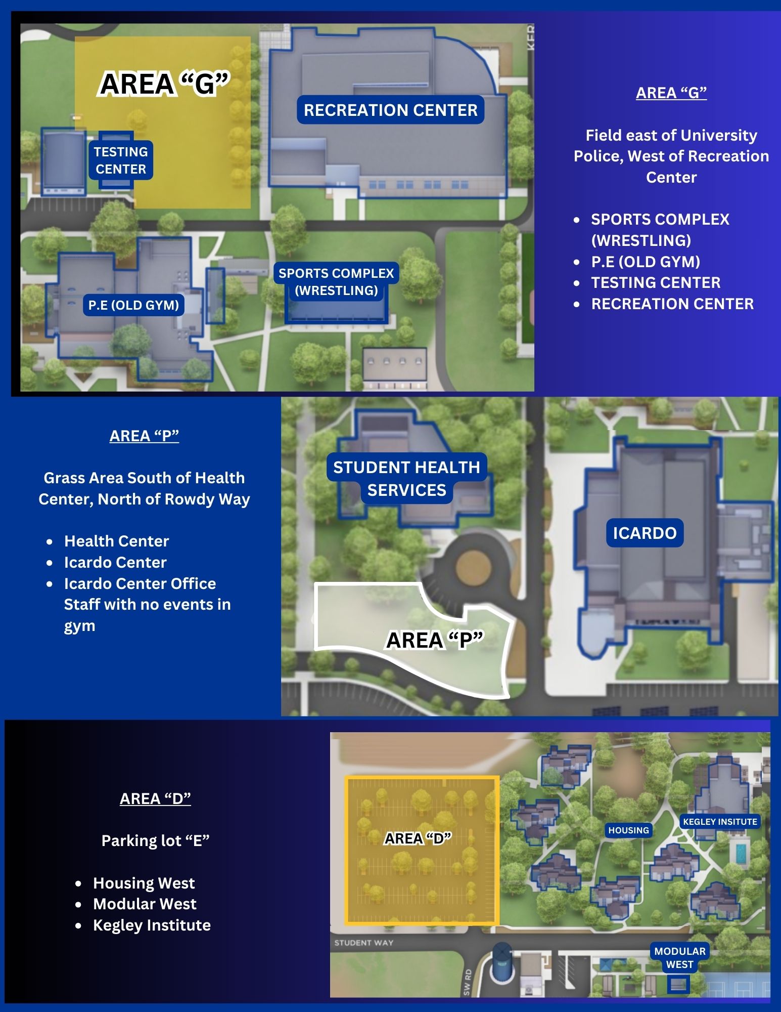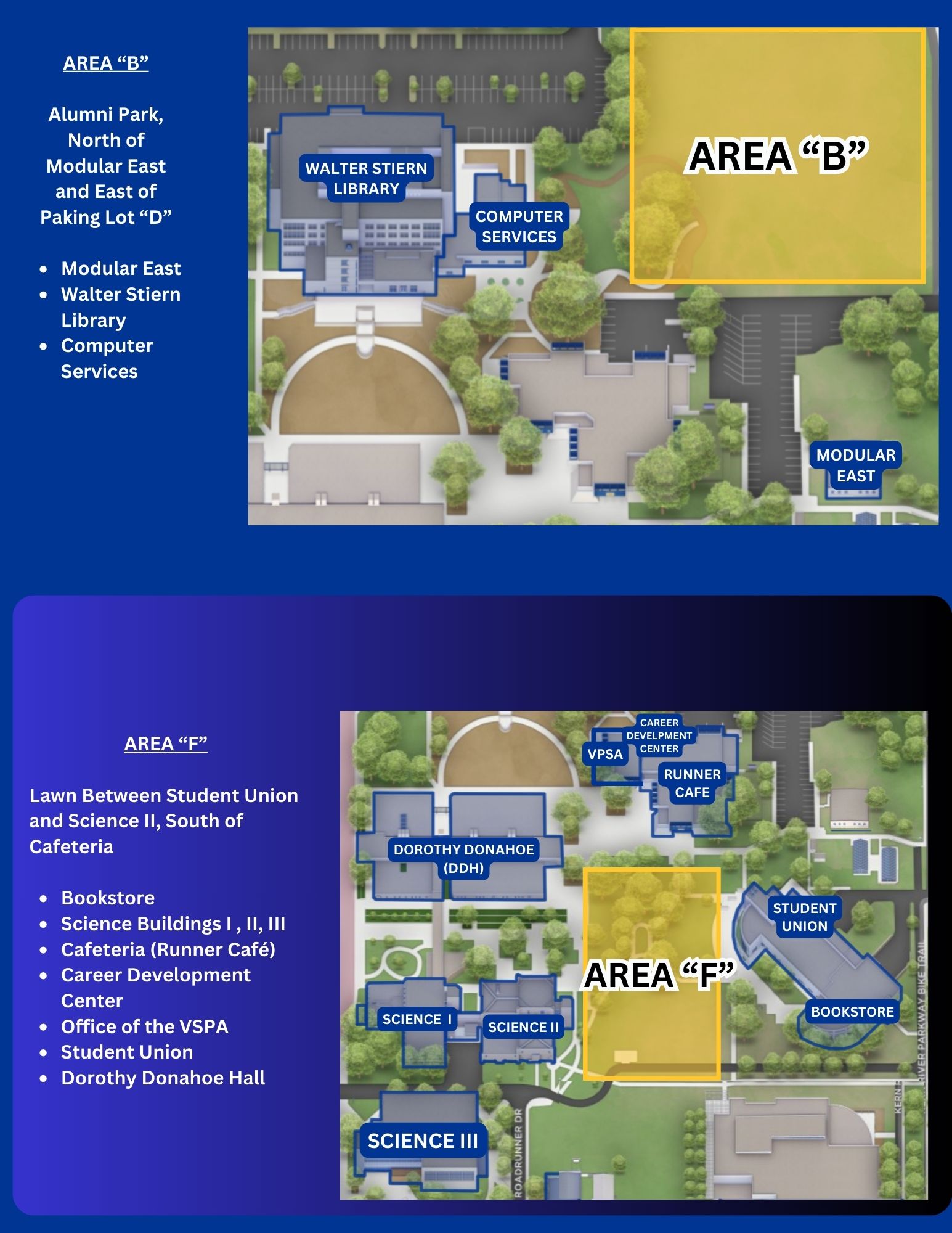 Area B, and F