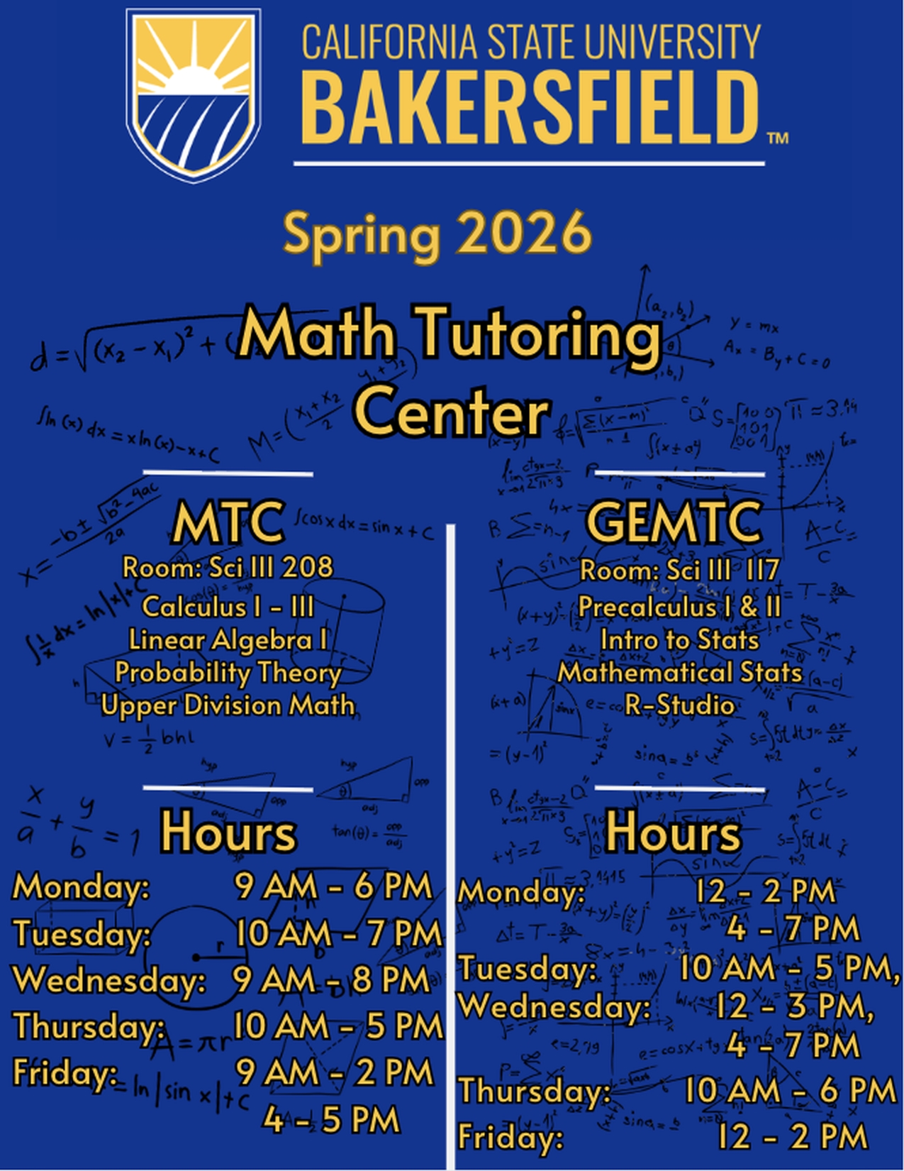 Math Tutoring Center Schedule Spring 2026